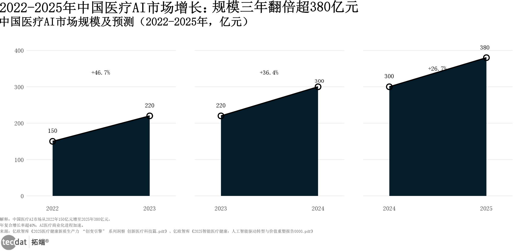 药融征询:2024市场洞察精准决策-医疗大数据赋能药企市场准入演讲 演讲2024-09-12中国医疗AI市场规模及预测(2022-2025年,步履:AI企业(中逛)可聚焦下层医疗场景(下逛高需求),2024年塑制美国医疗经济的八大趋向研究演讲 演讲2025-07-14