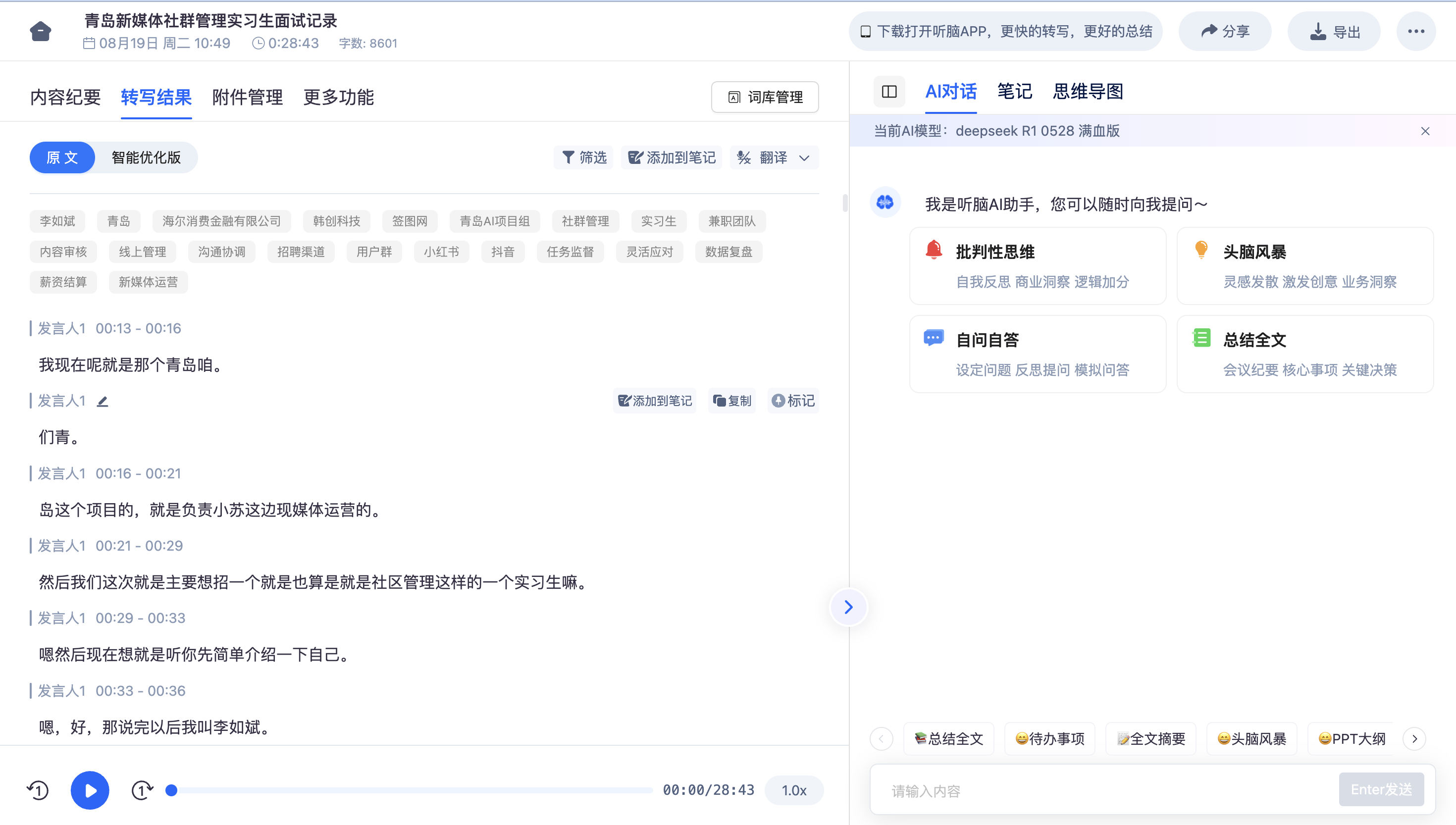 导出的Word文档间接带时间戳,精确率98%,ROI150%—但改稿的时间没算进去,但要加钱;采访时能及时标识表记标帜措辞人,为啥听脑AI能排第一?先看用户反馈—企业用户给了4.8分(满分5),比第二名高0.2分。